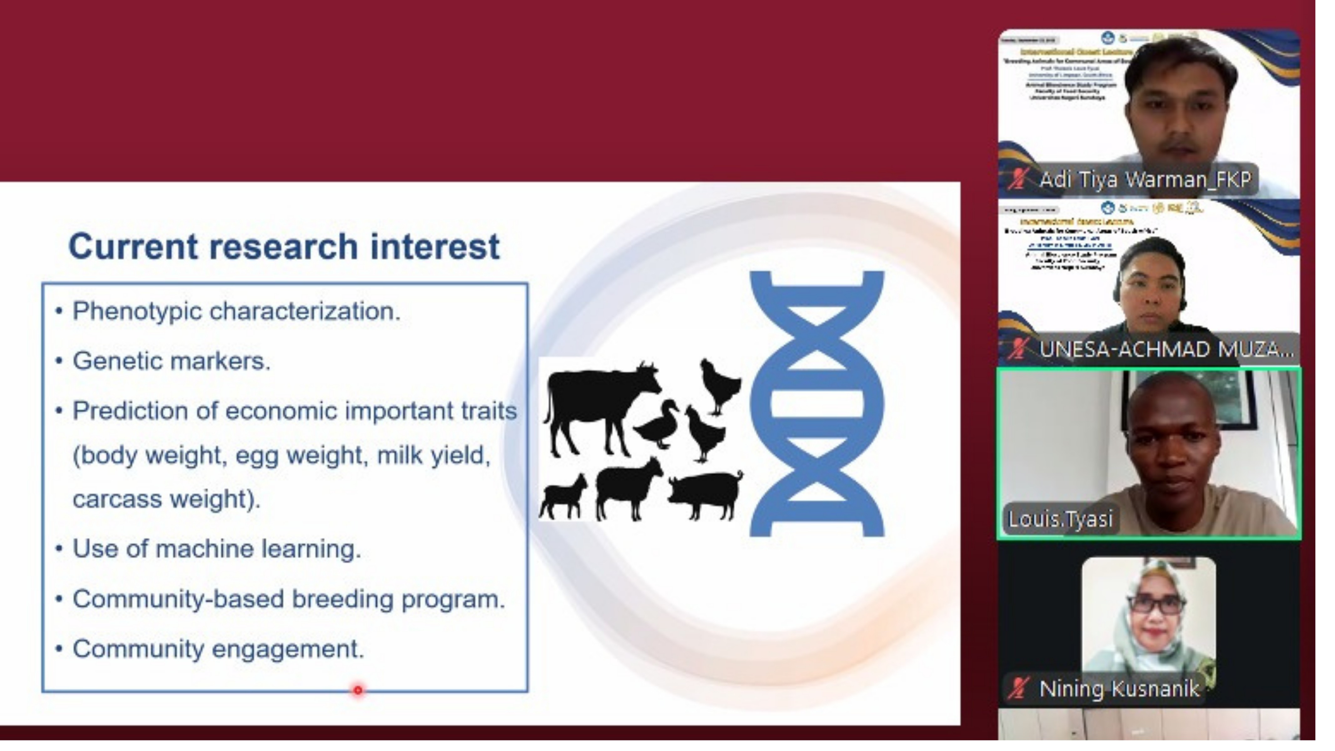 Surabaya, 23 September 2025. Program Studi Biosains Hewan Fakultas Ketahanan Pangan mengadakan International Guest Lecture dengan menghadirkan Prof. Thobela Louis